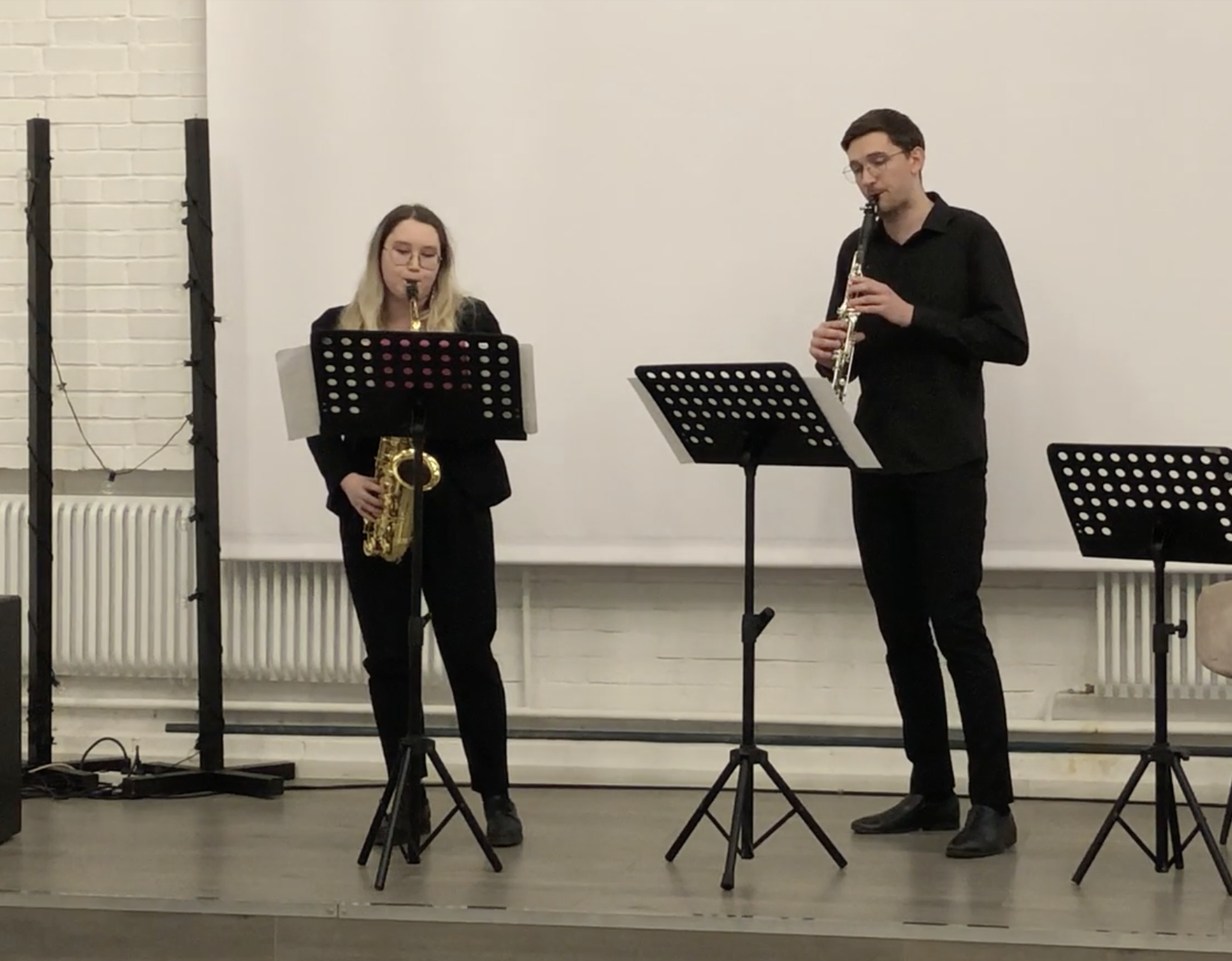 Ансамблевая программа была представлена двумя не менее впечатляющими духовыми дуэтами. Ярослава Блиндовская и Арсений Измитинский исполнили трехчастную композицию К. Куммера для флейты и кларнета. Вслед за ней прозвучал джазовый дуэт «Tuxedo» Н. Хомса для саксофона и кларнета в исполнении Камиллы Галимой и Арсения Измитинского.